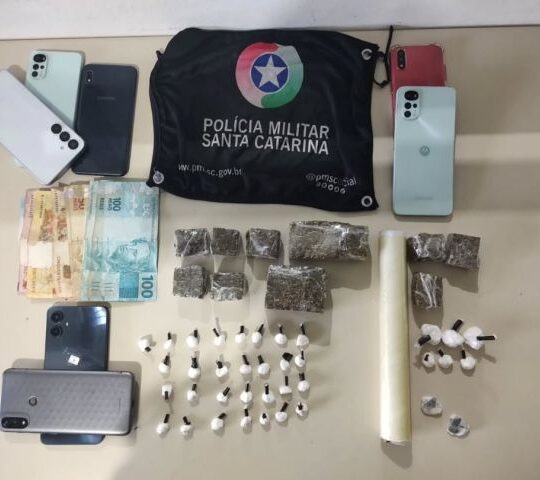 Continue ReadingCasal é preso com cocaína, maconha, haxixe e quase R$ 1 mil no bairro Fábio Silva A Polícia Militar desarticulou, nesta quarta-feira (11), um esquema de abastecimento e tele-entrega de drogas no bairro Fábio Silva, em Tubarão. A ação resultou na prisão de um homem de 38 anos e da esposa dele, de 30. Segundo […]