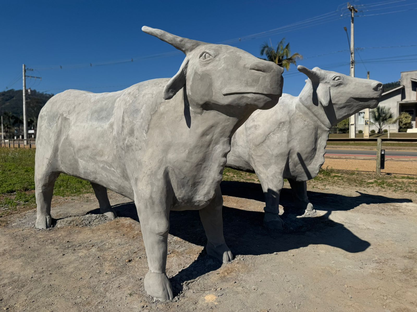 Além de impressionar pela grandiosidade, a estrutura visa valorizar o trabalho do agricultor familiar, que teve papel central no passado da colônia de Azambuja e segue sendo fundamental na economia de Pedras Grandes. A composição do monumento inclui dois bois moldados em cimento, com cerca de quatro metros de comprimento e dois metros de altura.