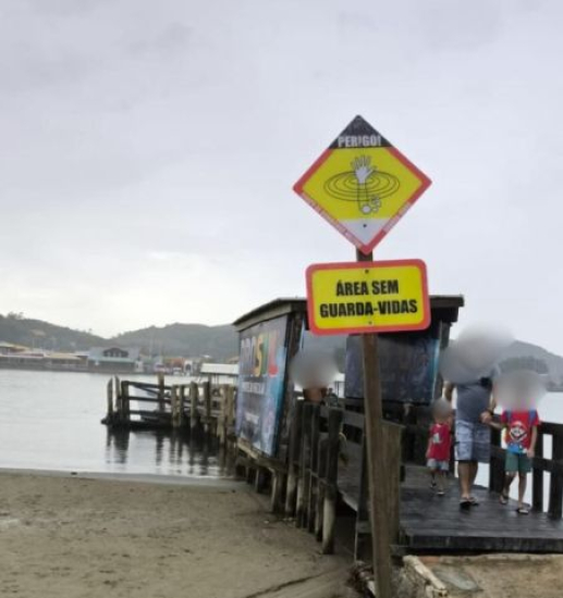 O local possui sinalização alertando sobre os riscos, porém não conta com monitoramento de guarda-vidas.