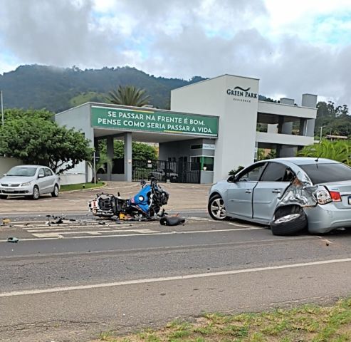 Jovem fica ferido em acidente entre carro e moto em Tubarão